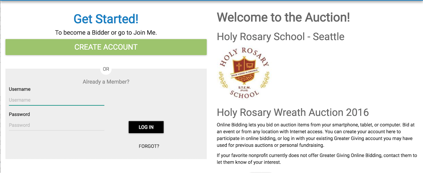 When you click on the wreath auction link, you will be directed to create an account. **Please note that online bidding accounts from last years auction are not valid for this years auctions, everyone will need to create a new account.